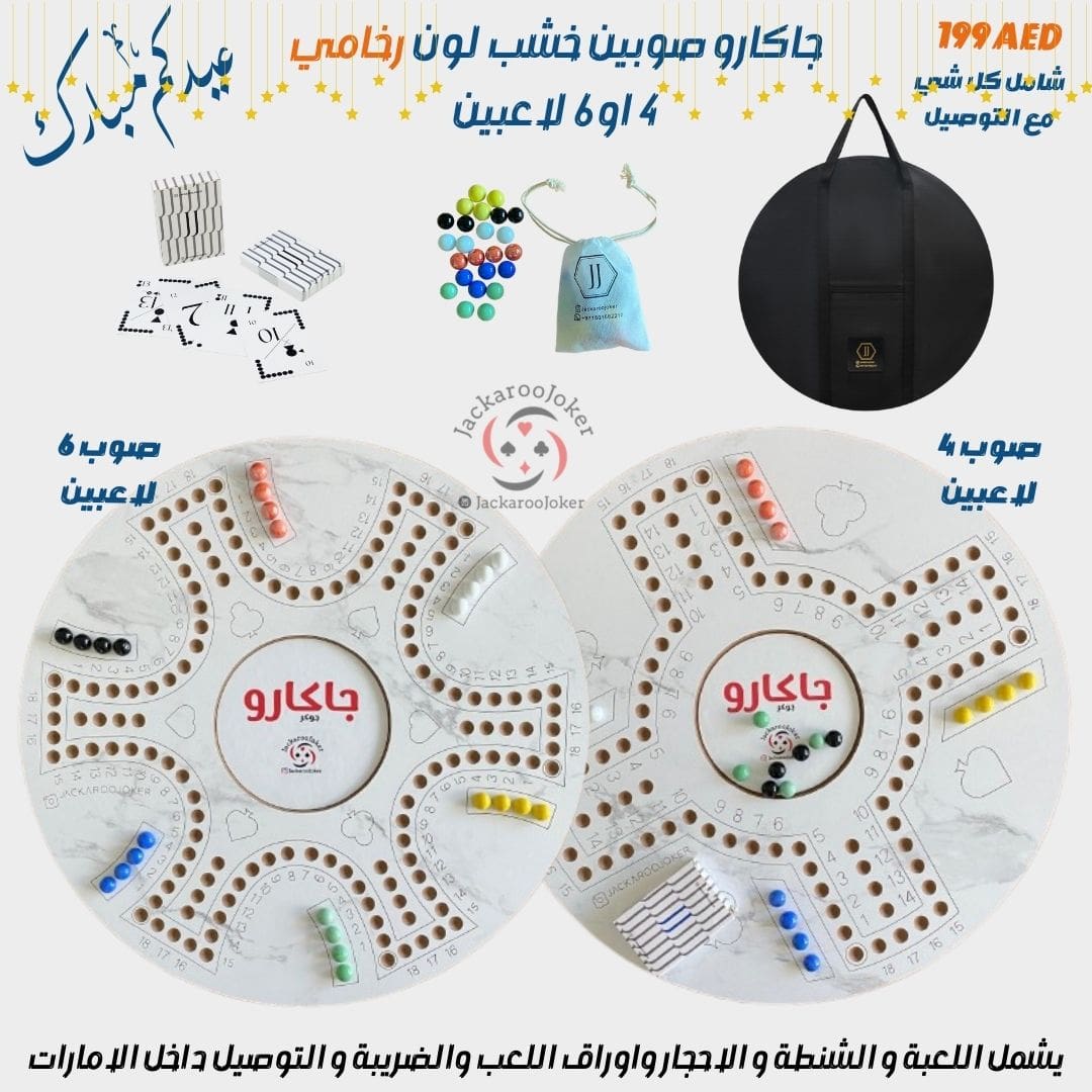 Brand: JackarooJoker Number of players : For 4 - 6 Players Comes with Marbles & Playing Cards & Bag Item dimensions : 54 x 54 x 2 centimeters